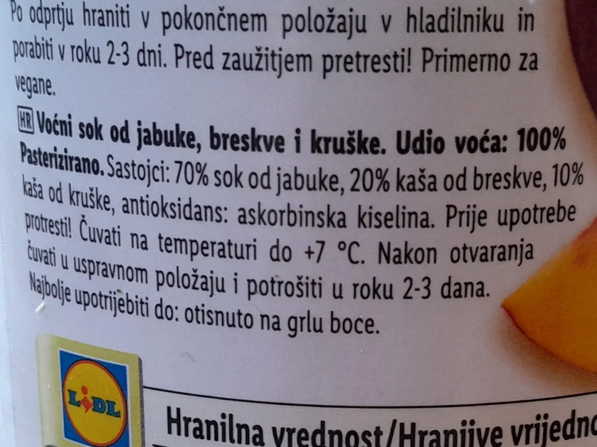 Svježi sok od jabuke, kruške i breskve 1 L
