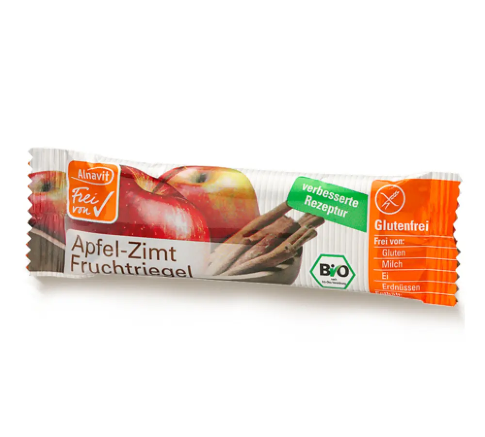 jabuke sušene 30 %, datulje sušene, bademi 20 %, grožđice, rižino brašno, koncentrat soka jabuke 3 %, cejlonski cimet 0,1 %