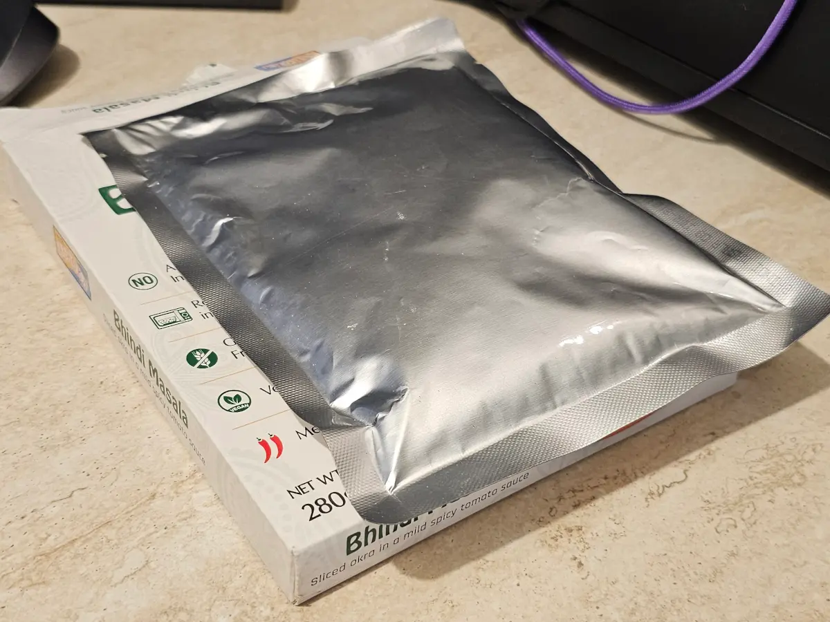 Bamija 34 %, voda, luk, rajčica, suncokretovo ulje, češnjak, sjemenke dinje, đumbir, sol, kukuruzni škrob, listići korijandera, začini (gorušica), zeleni čili, crveni čili u prahu, kim, korijander u prahu, kurkuma u prahu, sušeni mango u prahu, suhi listovi piskavice.