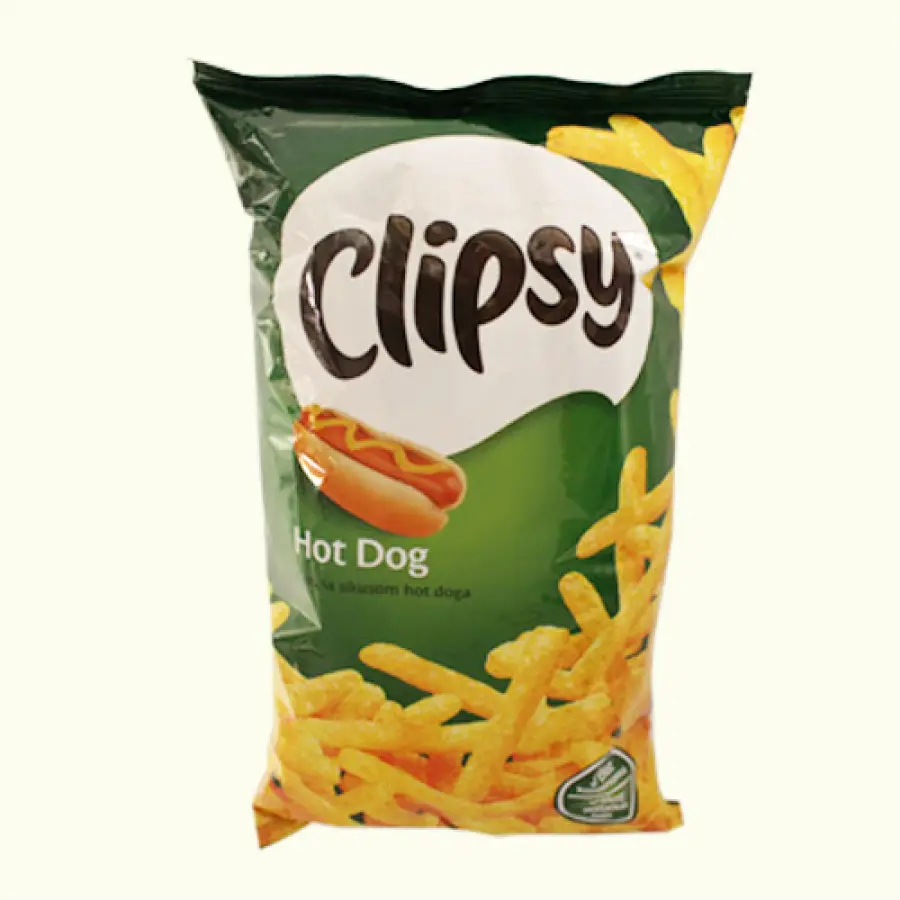 kukuruzni griz, krumpirovo brašno, biljno ulje, aroma hot doga minimum 7 % (sol, saharoza, gorušica, pojačivači okusa: mononatrijev glutaminat, dinatrijev guanilat i dinatrijev inozitat, pšenično brašno, glukoza, krumpirov maltodekstrin, hidrolizirani proteini, arome, biljno ulje), emulgator: mono– i digliceridi masnih kiselina