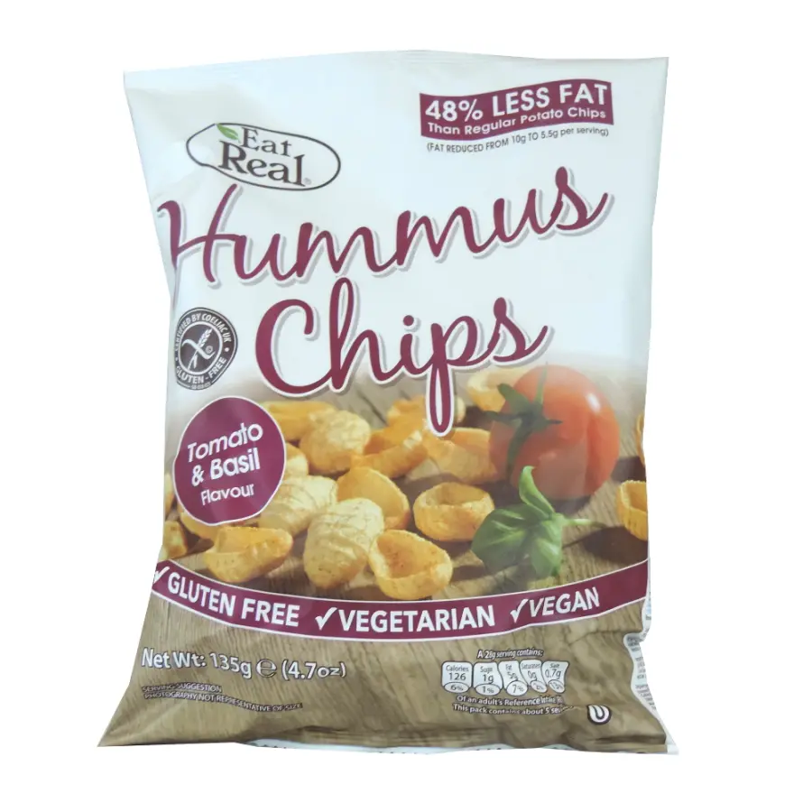 Slanutkovo brašno (45 %), riža, krumpirov škrob, biljno ulje (uljane repice), kukuruzno brašno, paradajz i bosiljak začin (2,5 %), (rižino brašno, šećer, dekstroza, sol, rajčica u prahu, ekstrakt kvasca u prahu, luk u prahu, bilje (uključujući bosiljak), češnjak u prahu, limunsku kiselinu, prirodne boje (E160c), prirodne arome, začini)