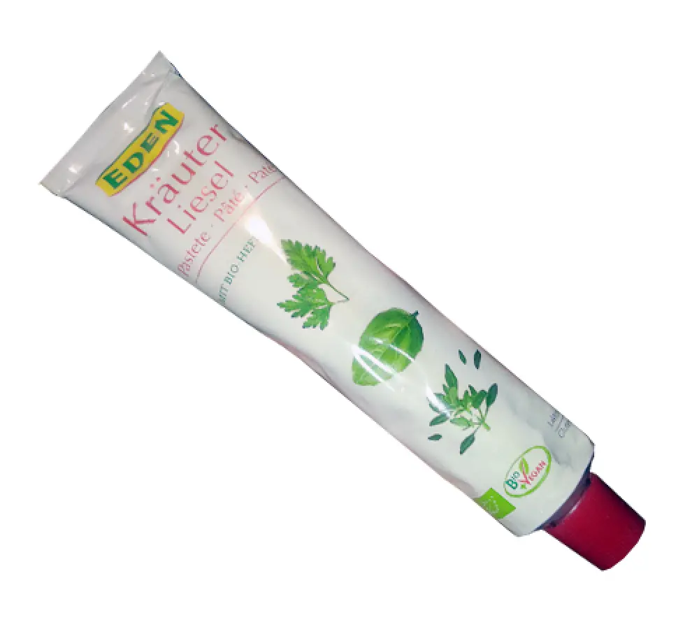 voda, palmina mast, tofu (soja, voda, Nigari), indijski oraščić, krumpirov škrob, kvasac 3,5 %, luk, celer, pire od rajčice, morska sol, bijeli luk, vinski ocat, bilje 1 % (bosiljak, peršin, mažuran, origano, čubar, timijan, lovorv list)