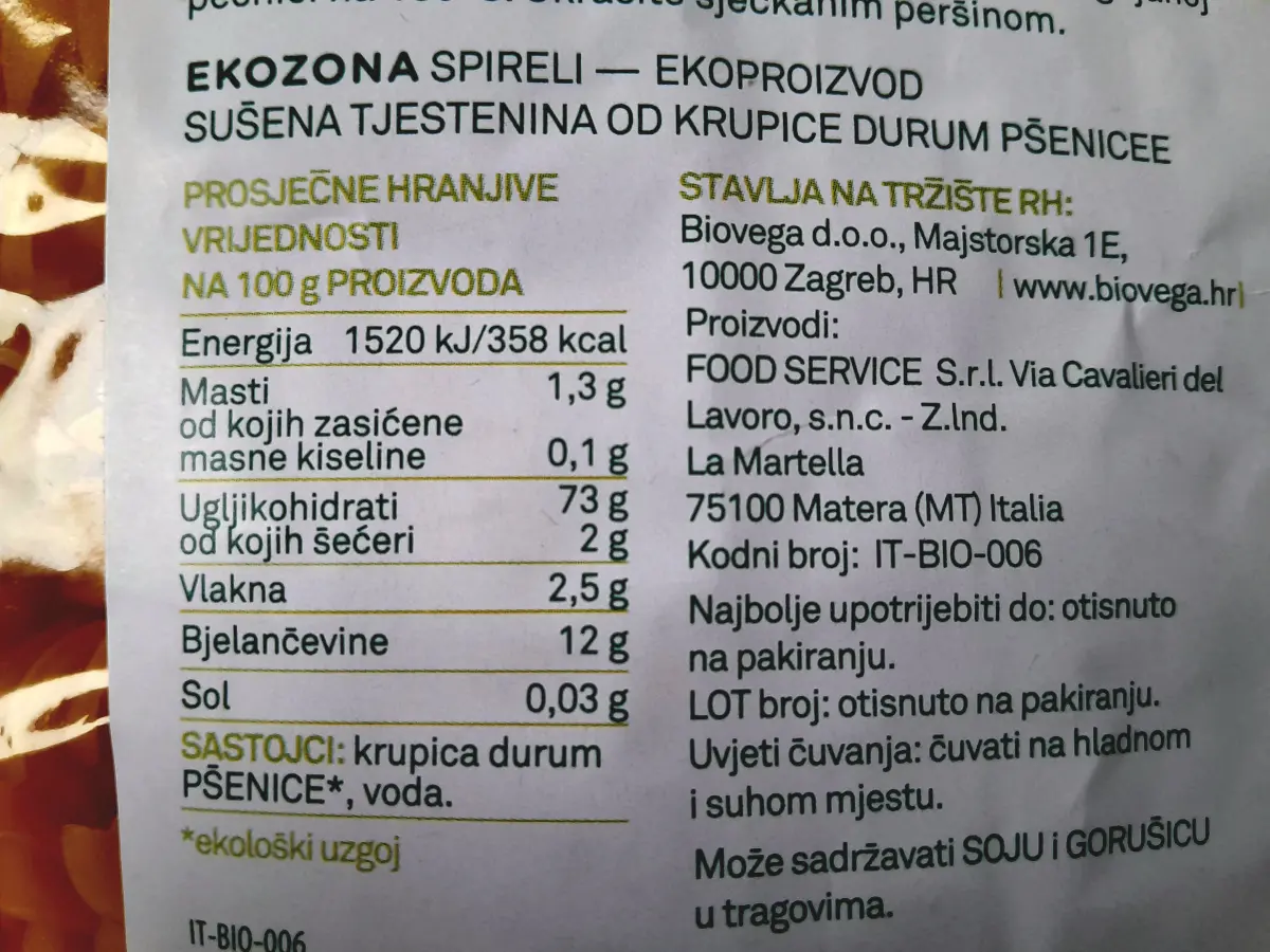Tjestenina durum spirelli 500 g