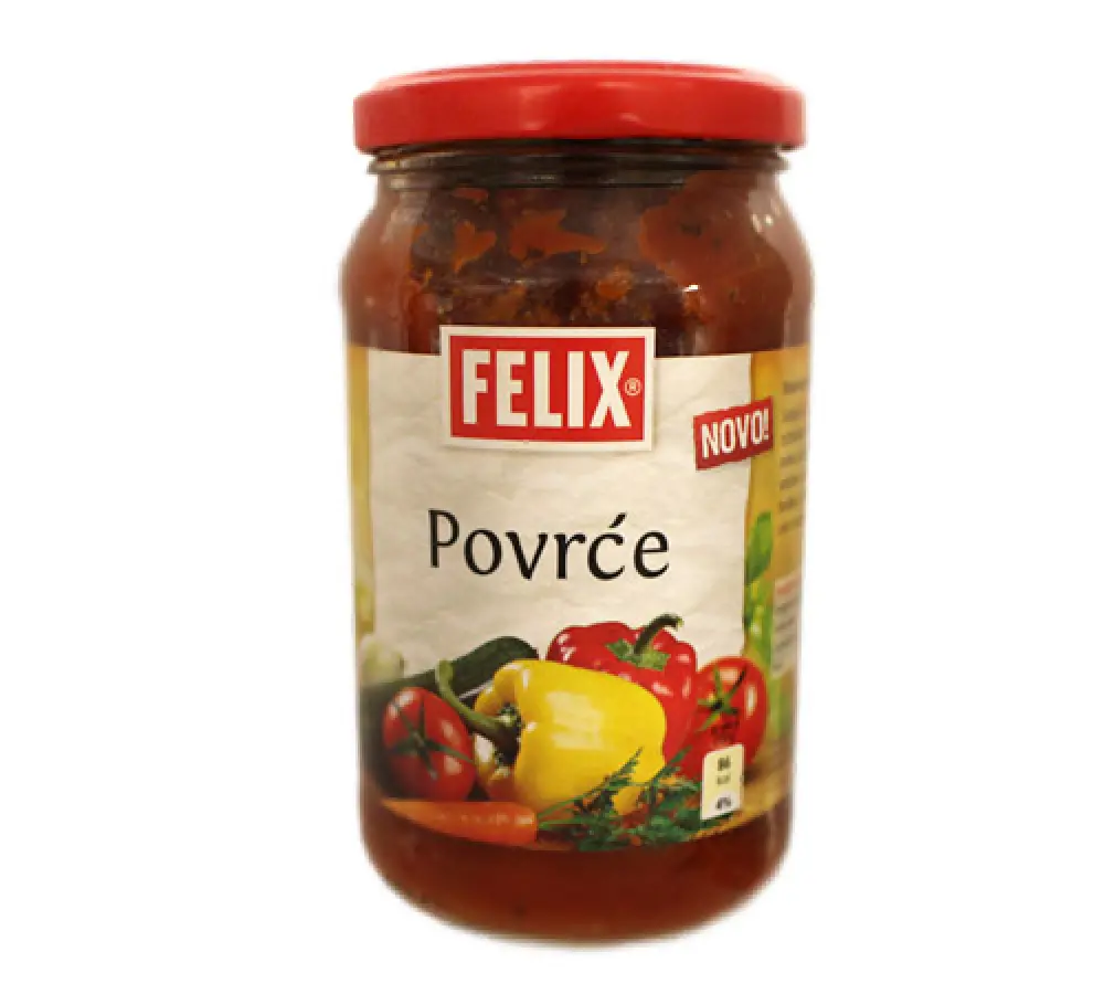 sastojci na 100 g: rajčica 140 g, povrće 23 g u raznim težinskom omjerima (tikvice, crvena i žuta paprika, mrkva, luk), biljno ulje, šećer, kuhinjska sol, češnjak, sredstvo za kiseljenje: limunska kiselina, bijeli papar, bosiljak, peršin, timijan, origano