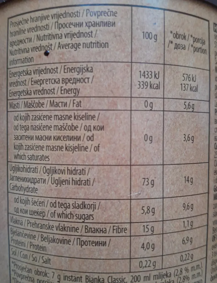 Ekstrakt ječma (51 %), ječmenog slada, cikorije i raži.