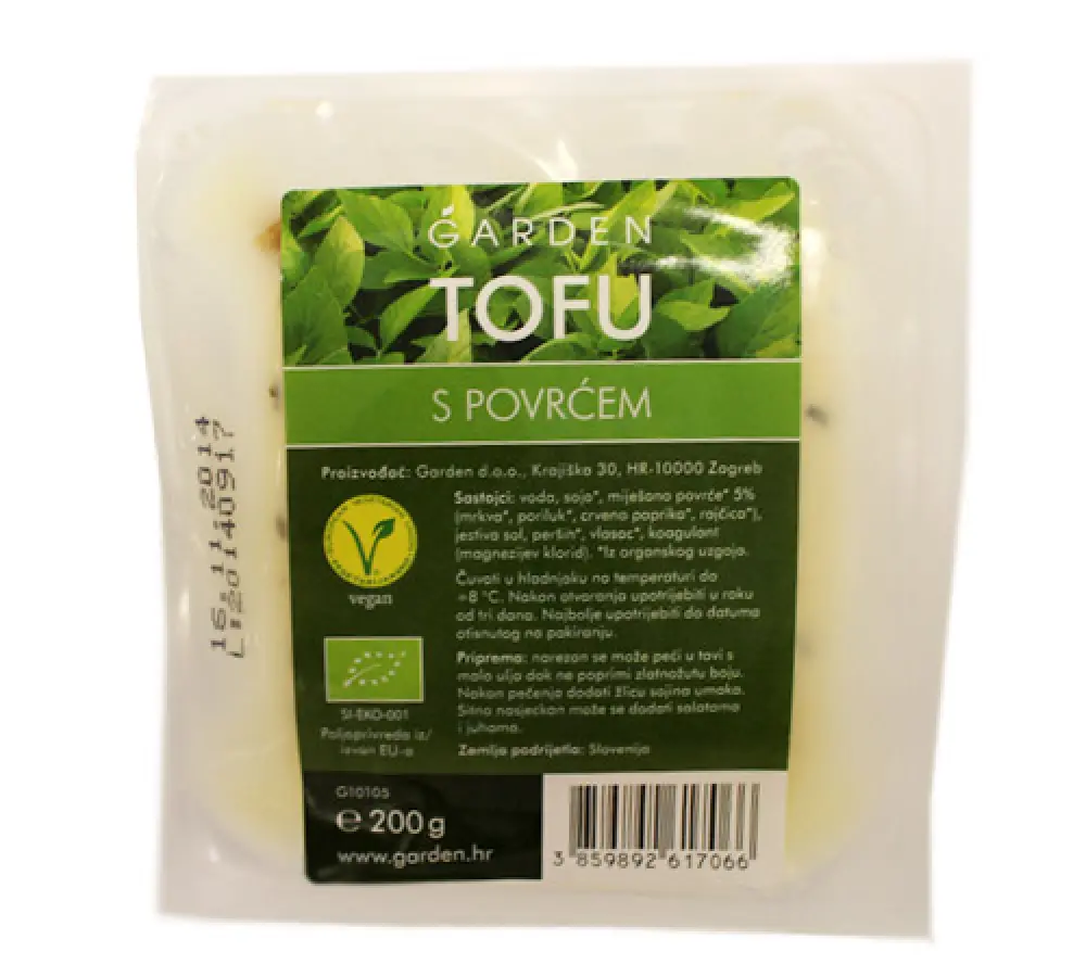 voda, soja, miješano povrće 5 % (mrkva, poriluk, crvena paprika, rajčica), jestiva sol, peršin, vlasac, koagulant (magnezijev klorid)