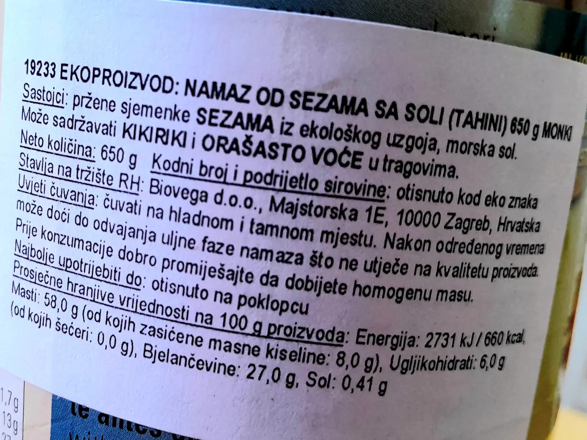 Tahini/maslac od sezama sa soli 650 g