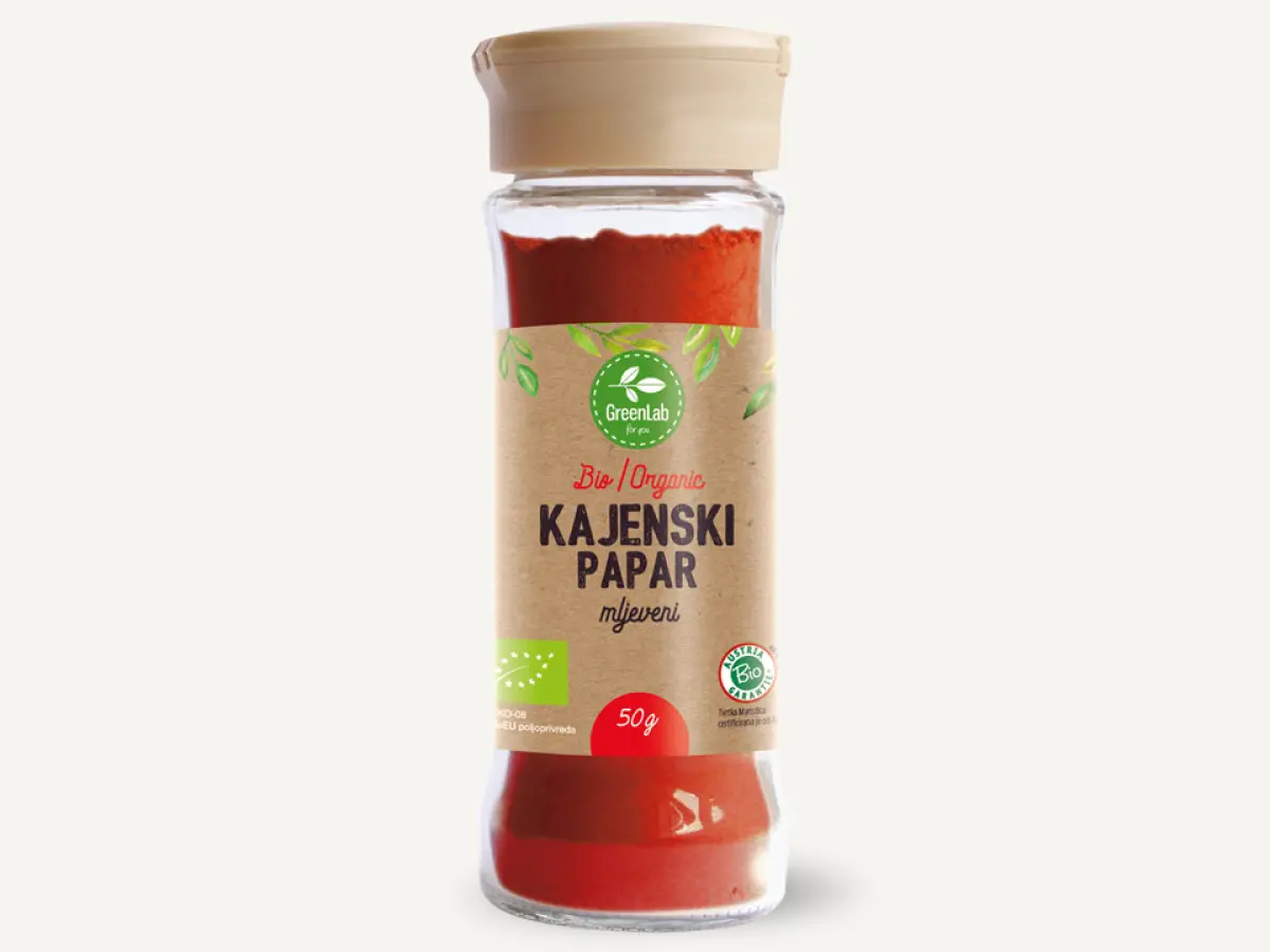 Kajenski papar u prahu iz ekološkog uzgoja.