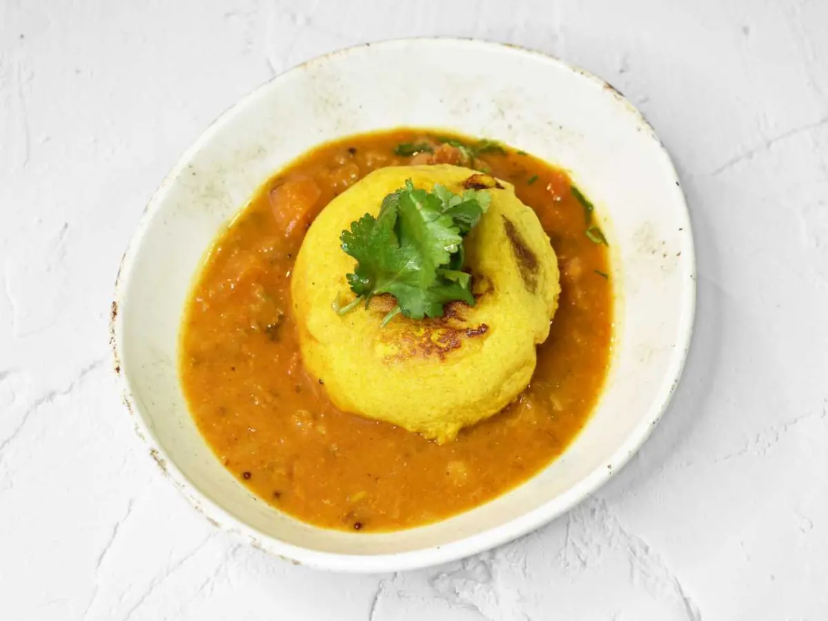 Okruglice od prženog krumpira u tijestu, leća, curry povrće