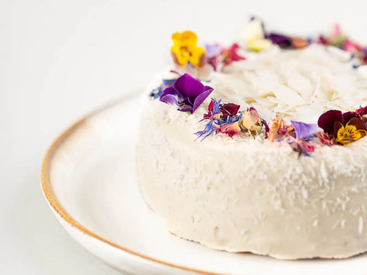 Bogata kremasta tekstura kokosovog maslaca, indijskih oraščića i ribanog kokosa. Puno kokosa, puno užitka. U kombinaciji s kakaom, te glazurom od kokosa i limuna podsjeća na ljeto i na sreću. Ukrasi na vrhu torte u obliku kokosovog čipsa i cvijeća.