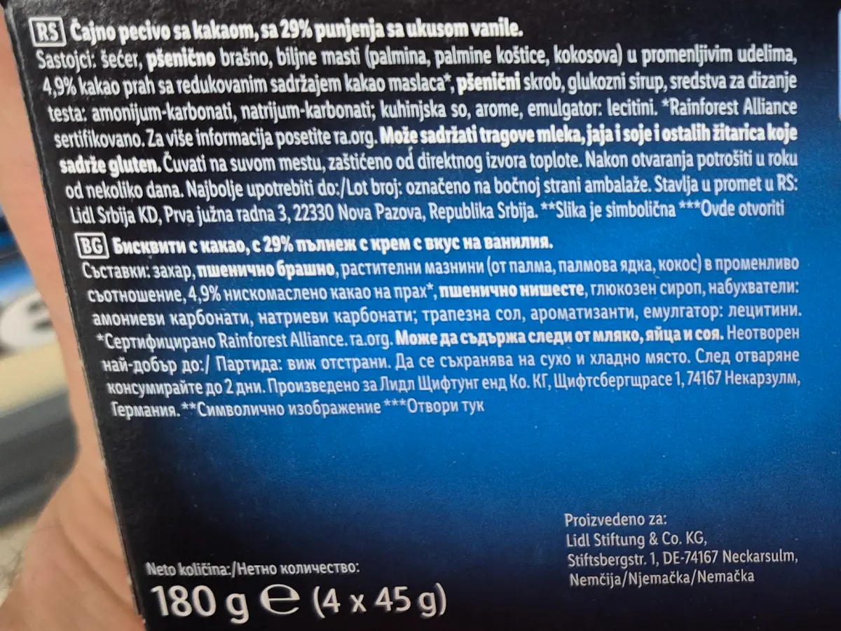 29 % punjenja s okusom vanilije.