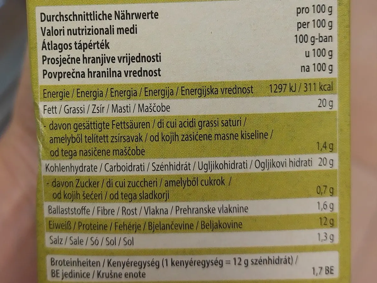 Hranjive vrijednosti na 100 g
