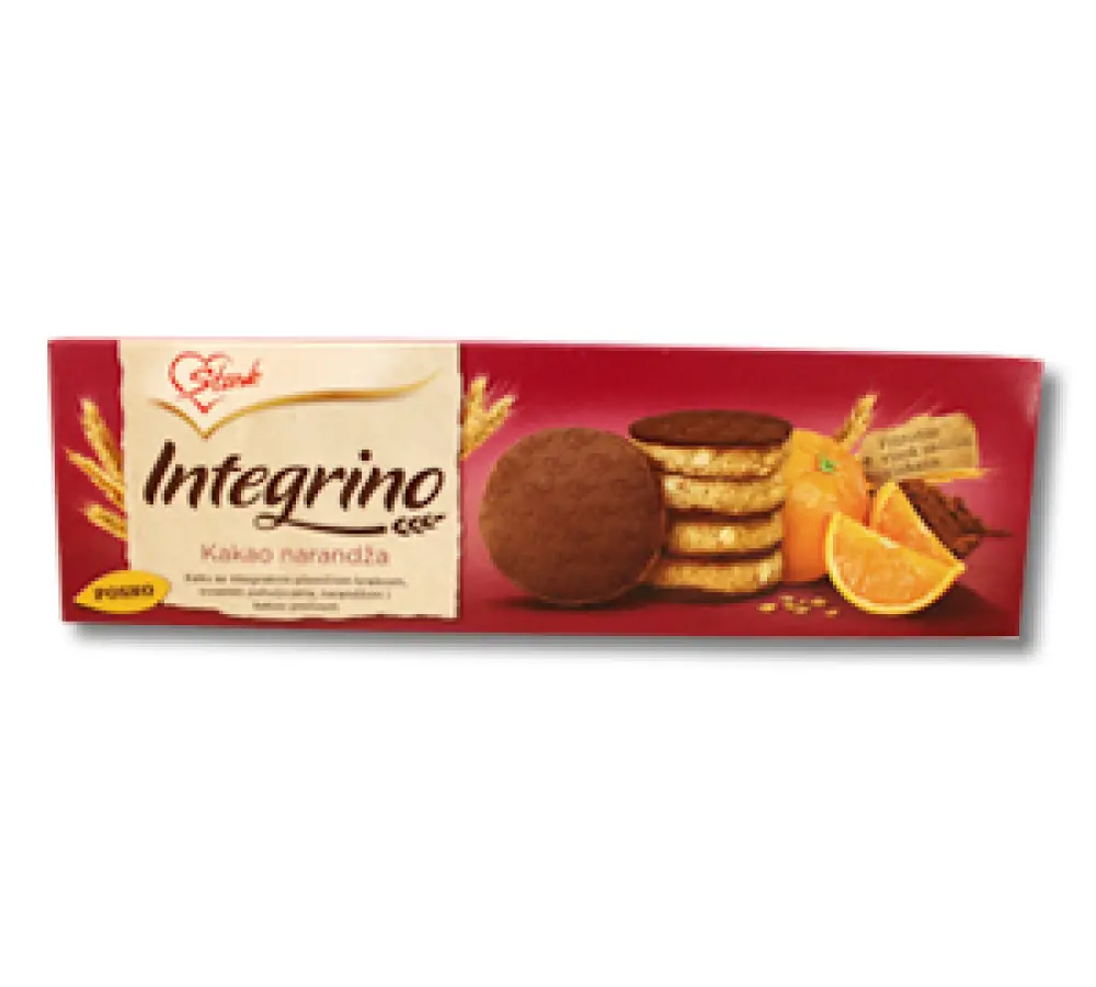 Integrino, keks s integralnim pšeničnim brašnom, zobenim pahuljicama, narančom i kakaovim preljevom