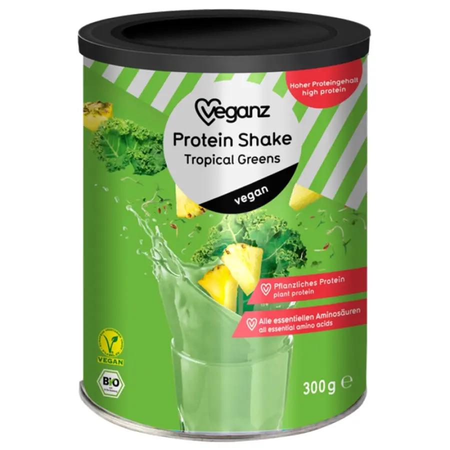 protein graška, protein riže, kakao u prahu smanjene masnoće, šećer kokosovog cvijeta, tropska voćna aroma, protein konoplje, spirulina u prahu, lucerna u prahu