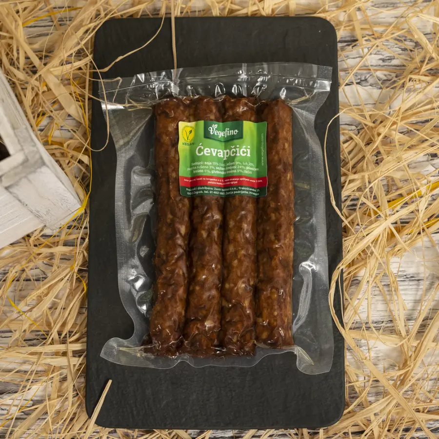 Sastojci: soja 15 % (bio), ječam 9 %, luk 20 %, paprika sušena 3 %, sejtan dimljeni 24 %, pšenično brašno 6 %, glutensko brašno 9 %, začini.