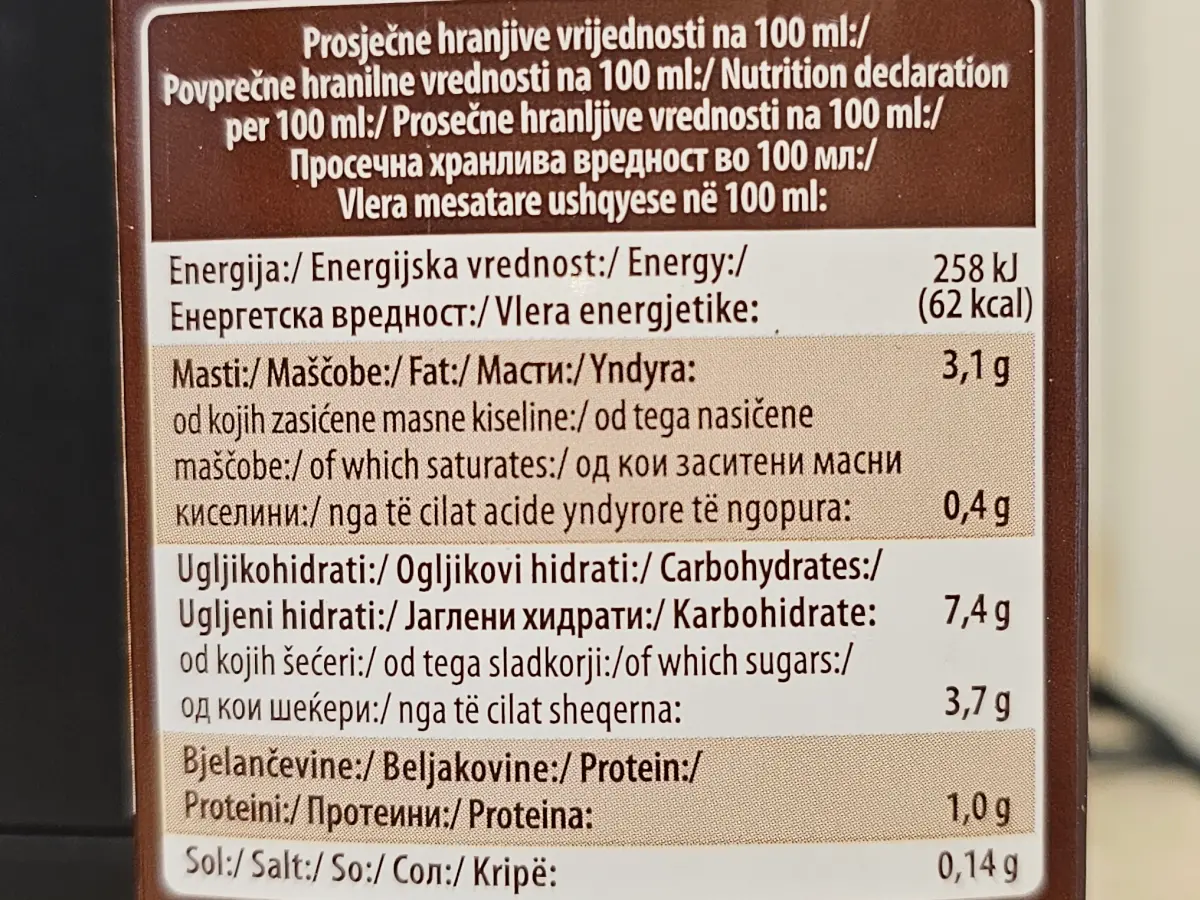 Prosječna hranjiva vrijednost 100 ml