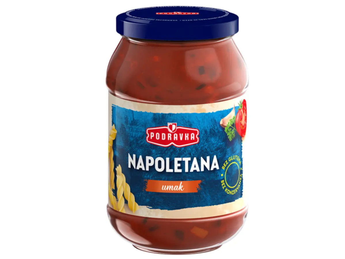 Sjeckana rajčica 42,3 %, pasirana rajčica 32 %, koncentrat rajčice 10 %, luk, mrkva, šećer, kuhinjska sol, suncokretovo ulje, ekstra djevičansko maslinovo ulje, češnjak 0,5 %, peršin 0,2 %, timijan, vlasac, biber.
