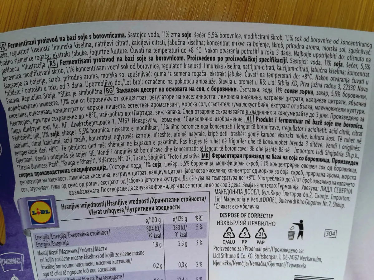 Jogurt od soje s borovnicama 500 g