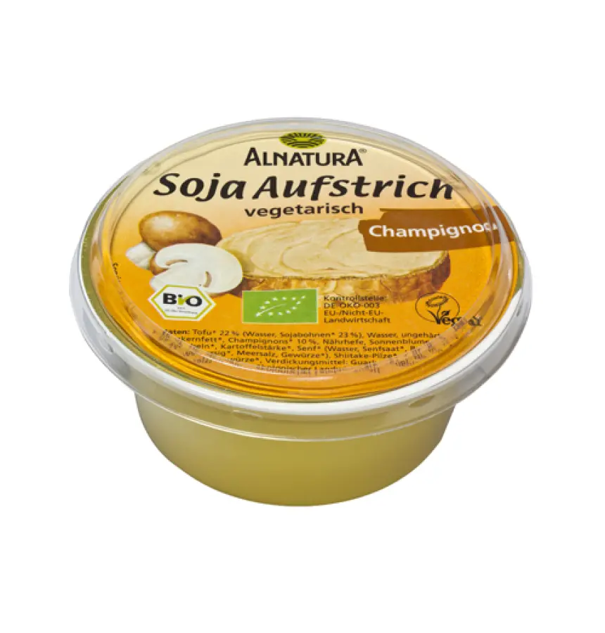 Voda, tofu 19 % (voda, sjemenke soje 23 %), šampinjoni 10,5 %, kokosova mast nehidrogenirana, kvasac u prahu, ulje suncokreta, luk, krumpirov škrob, senf (voda, sjeme gorušice, vinski ocat, morska kuhinjska sol, začini), shiitake gljive, morska kuhinjska sol, začini, umak od soje (voda, sjemenke soje 15 %, sol), zgušnjivač: guar guma.