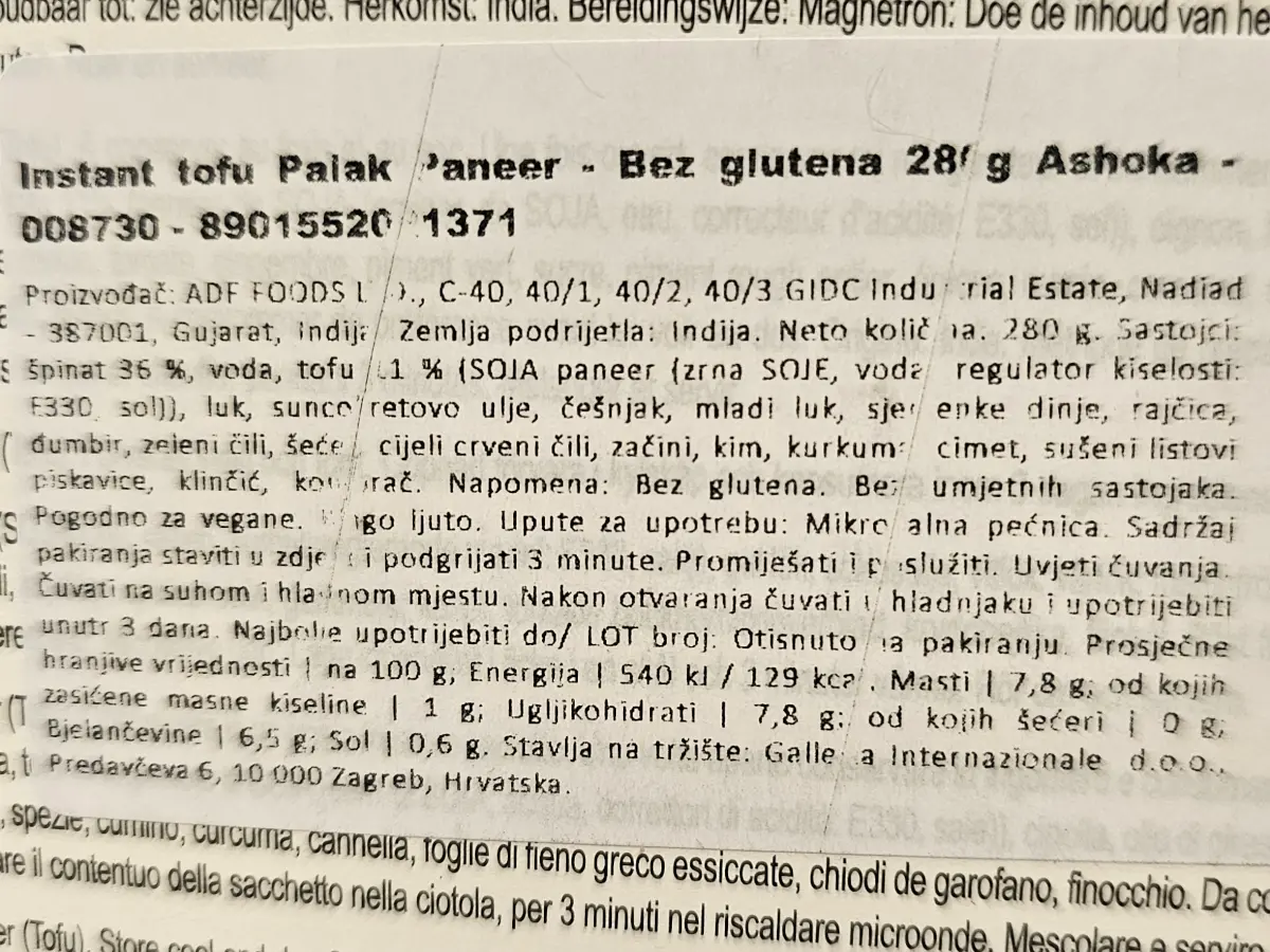Palak Paneer Tofu 280 g