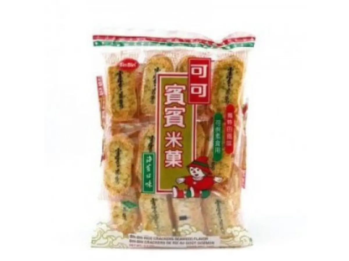 riža, ulje od rižinog brašna, šećer, modificirani tapiokin škrob, sojin umak u prahu (soja, pšenica, dekstrin, bojilo: E150d), pojačivač okusa: E621, E627, E623), suhe alge pahuljice 0.8 %