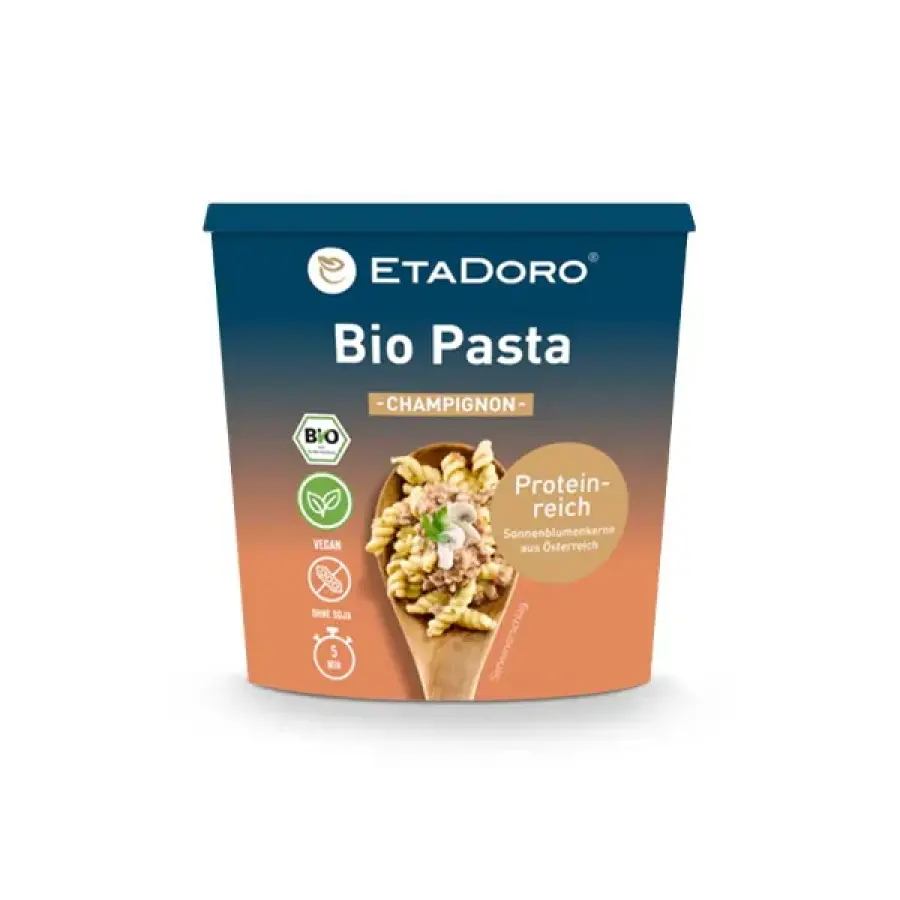 Sastojci: 70 % rezanaca* (DURUM PŠENIČNA KRUPICA*), 15 % suncokret mljeveni* (Bjelančevine suncokreta*), 5 % šampinjona*, luk*, krumpirov škrob*, mrkva* (koncentrat soka od mrkve*, kukuruzni škrob*), 1 % gljive*, sol, juha zelena* (mrkva*, pastrnjak*, poriluk*, celer*), češnjak*, aroma dima, morska sol, rajčica u prahu*, paprika*, dim (crnika), papar* * iz ekološkog kontroliranog uzgoja. Prosječne Nutritivne vrijednosti na 100 g: Energija 1522 kJ / 360 kcal, Masti 3,3 g, od kojih zasićene masne kiseline 0,7 g, Ugljikohidrati 59,5 g, od čega Šećeri 4,8 g, Dijetalna vlakna 7,1 Bjelančevine 19,5 g, Sol 1,3 g.