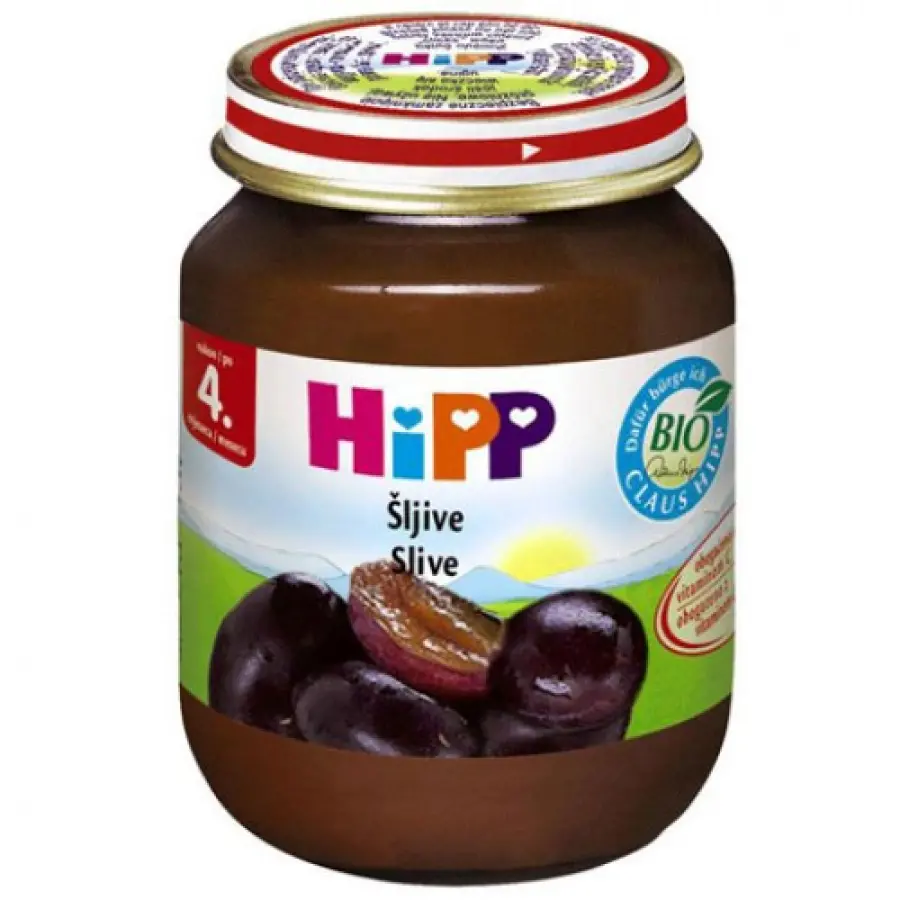 Šljive 50 %, voda, šećer, rižina krupica, rižin škrob, vitamin C