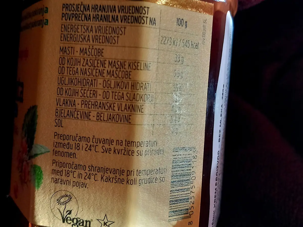 energetska vrednost: 2243 kJ / 538 kcal