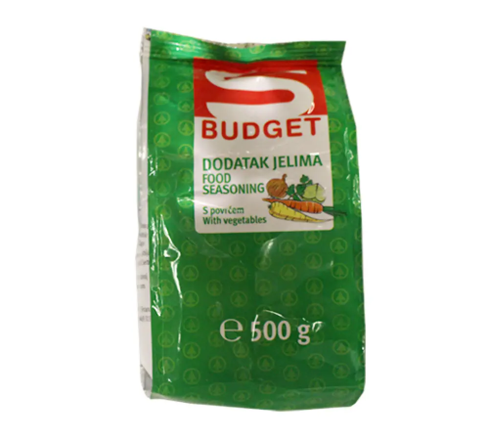 kuhinjska sol do 54 %, pojačivač okusa (Na-gluminat do 20 %, dinatrijev inozinat), sušeno povrće min. 15 % (korijen pastrnjaka, korijen mrkve, crveni luk, poriluk, peršin list, list celera, papar, curry), dekstroza, začini, obogaćeno vitaminom B2 (boja riboflavin)