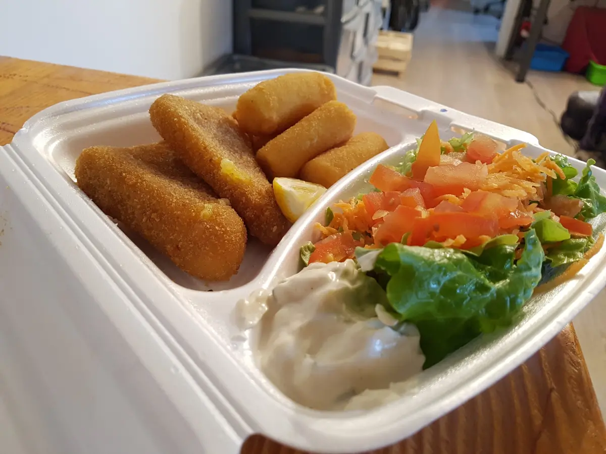 Pohani trokuti vegan goude, kroketi od krumpira, tartar, pinkica salate i kriška limuna; dosad neviđeno